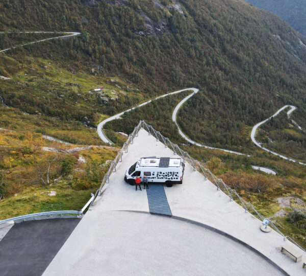 Na wyprawie łączymy znane widokowe drogi (fiordy, przełęcze, tunele) z rozsądnymi dziennymi dystansami i unikamy odcinków, które dla początkujących kierowców kamperów są zwyczajnie „za grube”. Jeśli któryś fragment budzi Twój stres, możemy go objechać, przejechać w innym tempie albo umówić się, że jedziesz bezpośrednio do miejsca noclegu – bezpieczeństwo i komfort są ważniejsze niż „odhaczenie” każdej serpentyny.