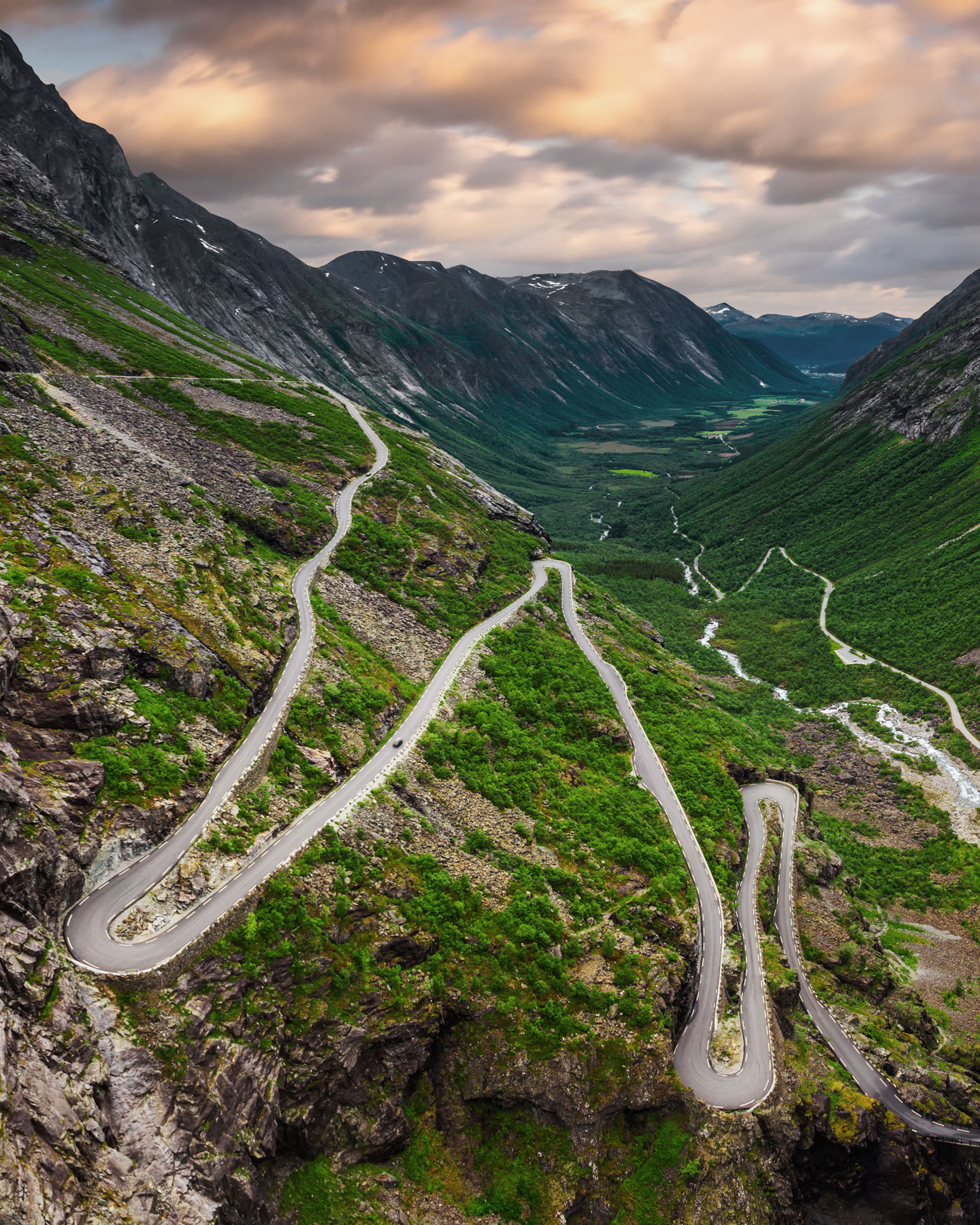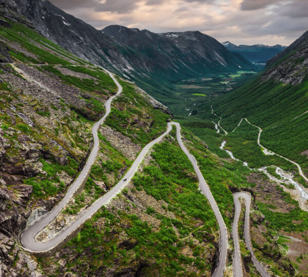 - Trollstigen – słynna Droga Trolli z ostrymi zakrętami i spektakularnymi widokami.