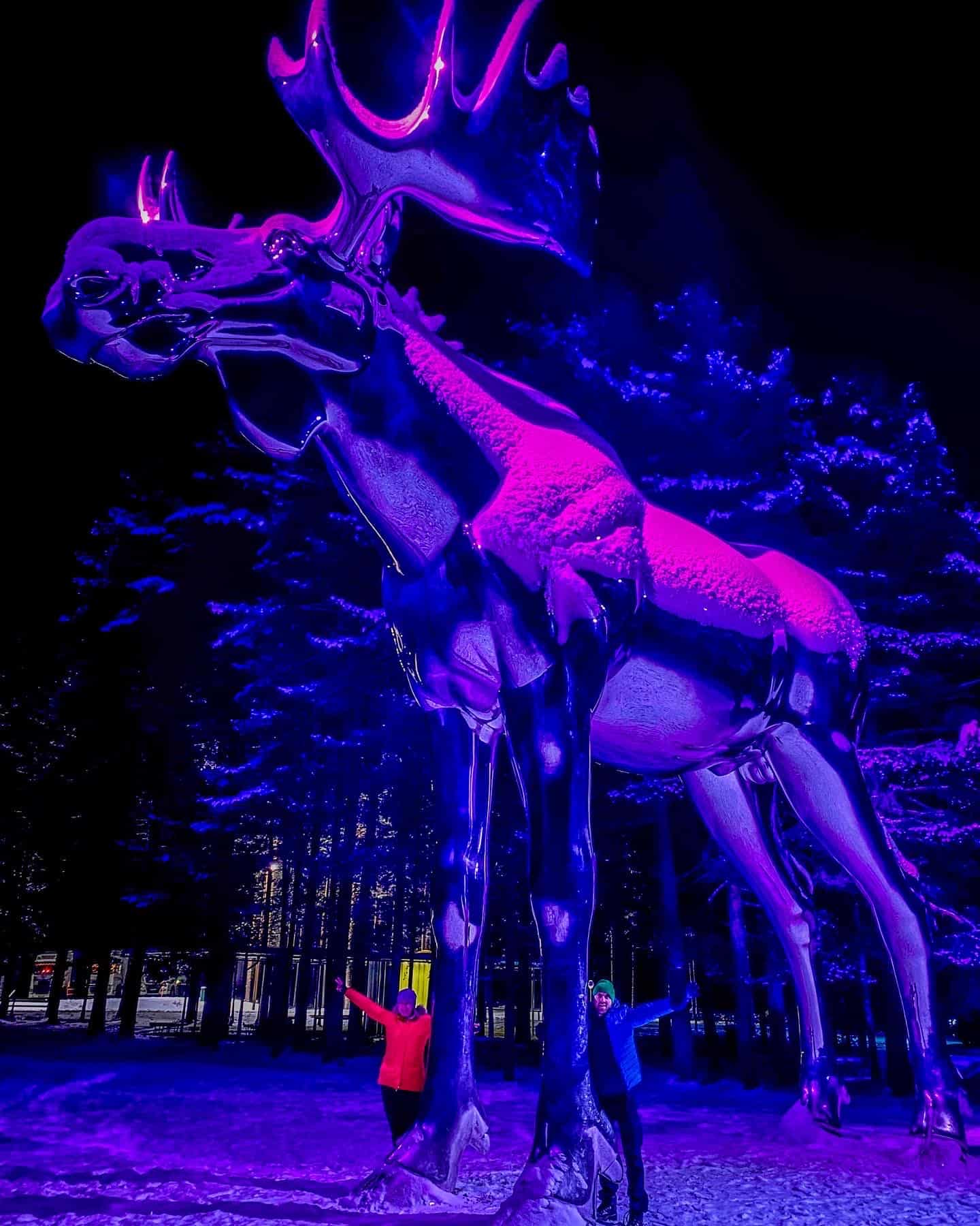 Stoi przy drodze krajowej nr. 3 w Stor-Elvdal. Ma 12 metrów długości i 10 metrów wysokości. Odsłonięty w październiku 2015 roku do 2019 roku był największą rzeźbą łosia na świecie. Dopóki….. nie rozpętała się wojna na łosie.