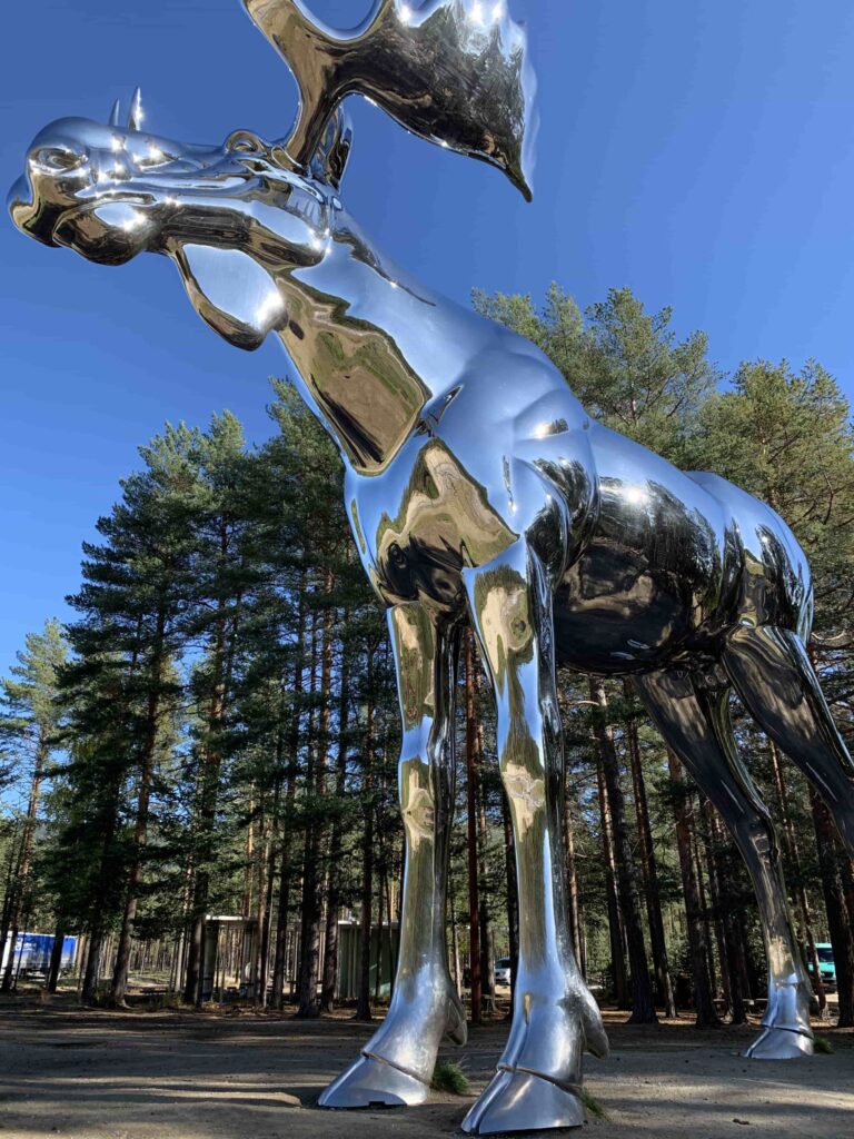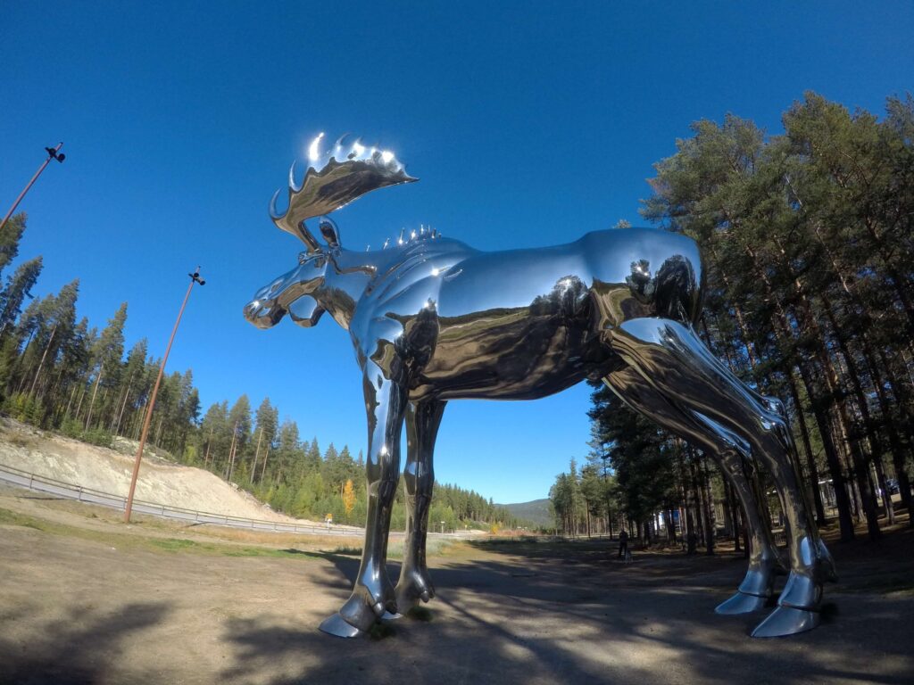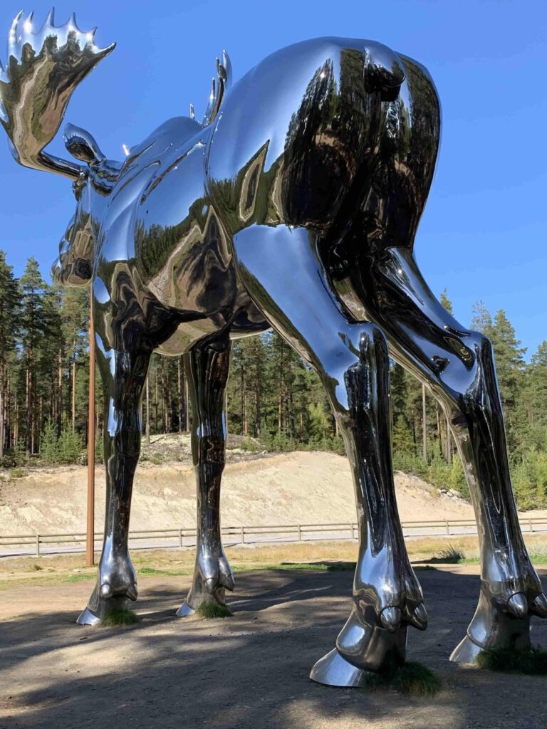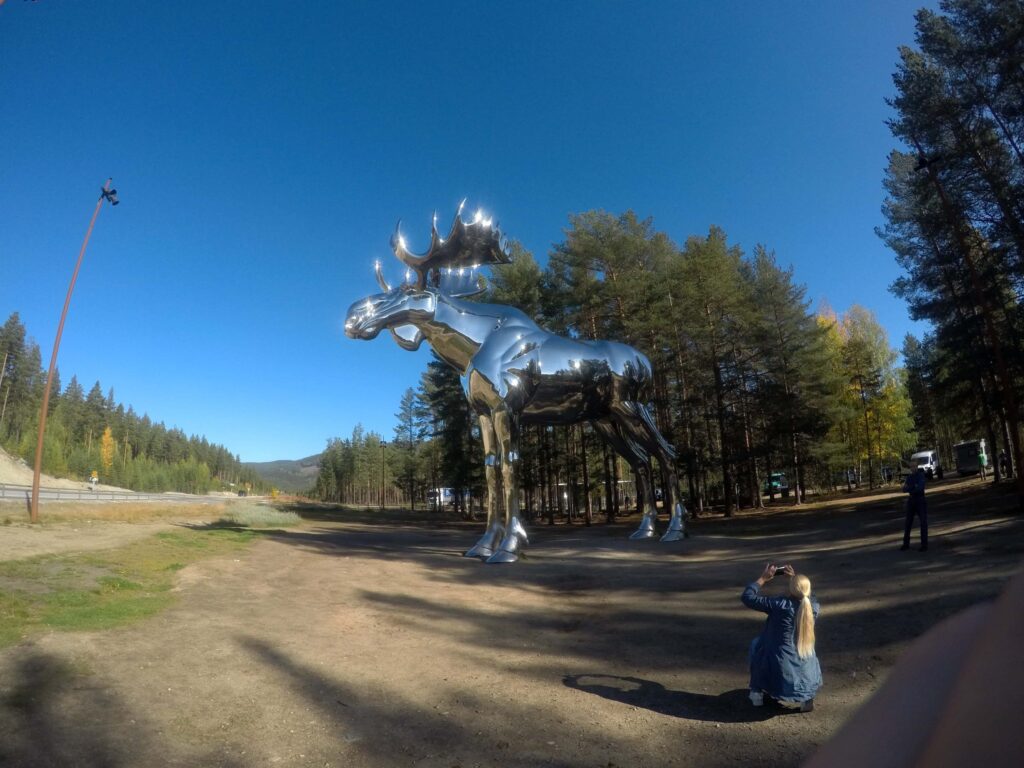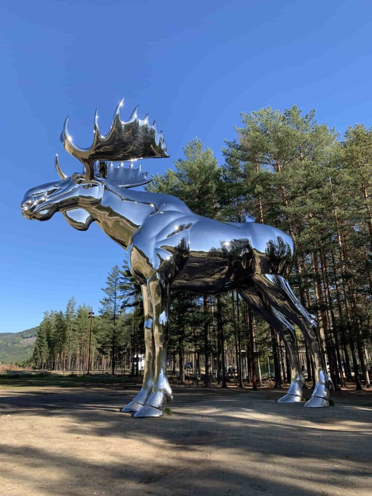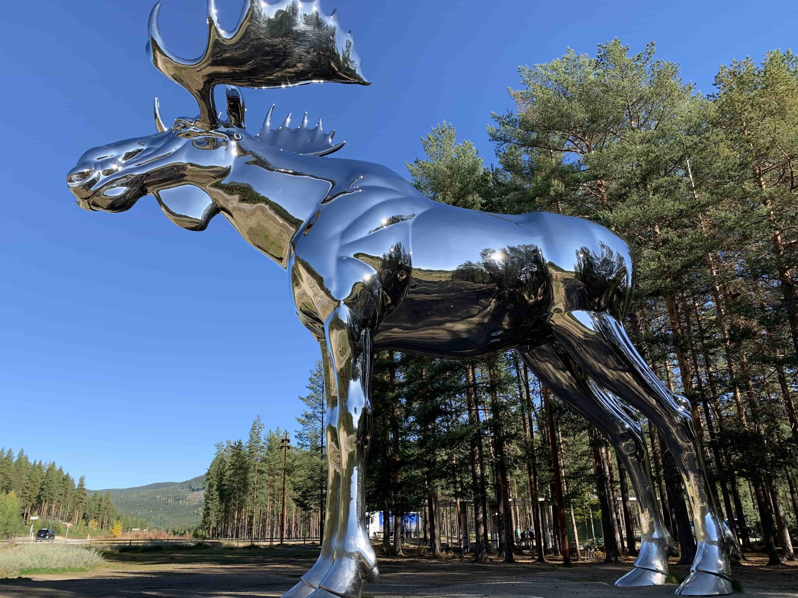 Często podróżując po drogach Norwegii pojawiają się znaki ostrzegawcze o łosiach na drodze. Średnio na drogach ginie aż 1200 tych zwierząt rocznie. Aż strach pomyśleć jaka trauma spotyka też ludzi po bliskim spotkaniu z tym olbrzymem. Hedmark ma nie tylko największą populację łosi w kraju, ale i też łosiego olbrzyma, który pilnuje drogi.